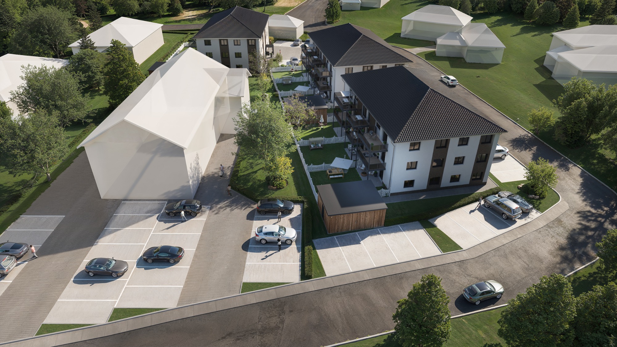 Mit den Kreutzkamp-Residenzen wird das historische Umfeld von Cappenberg auf moderne Weise weitergeführt. Die Architektur der drei Gebäude orientiert sich bewusst an den ruhigen, klaren Formen westfälischer Baukultur, interpretiert diese jedoch zeitgemäß: Helle Fassaden, präzise Linienführungen und großzügige Fensterflächen schaffen ein offenes, lichtdurchflutetes Erscheinungsbild, das einen harmonischen Übergang zwischen Tradition und Gegenwart bildet. Das Projekt steht an einem Ort, der seit Jahrhunderten ein fester Bestandteil der Cappenberger Identität ist. Die unmittelbare Nachbarschaft zum Haus Kreutzkamp, einem historischen Treffpunkt und einstigen gesellschaftlichen Mittelpunkt des Ortes, verleiht den Residenzen eine besondere Verankerung.